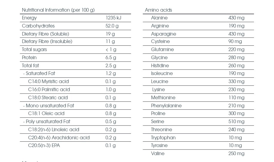 - A rich source of minerals (Potassium, Calcium, Magnesium, Zinc, Selenium, Phosphorus, Iodine)